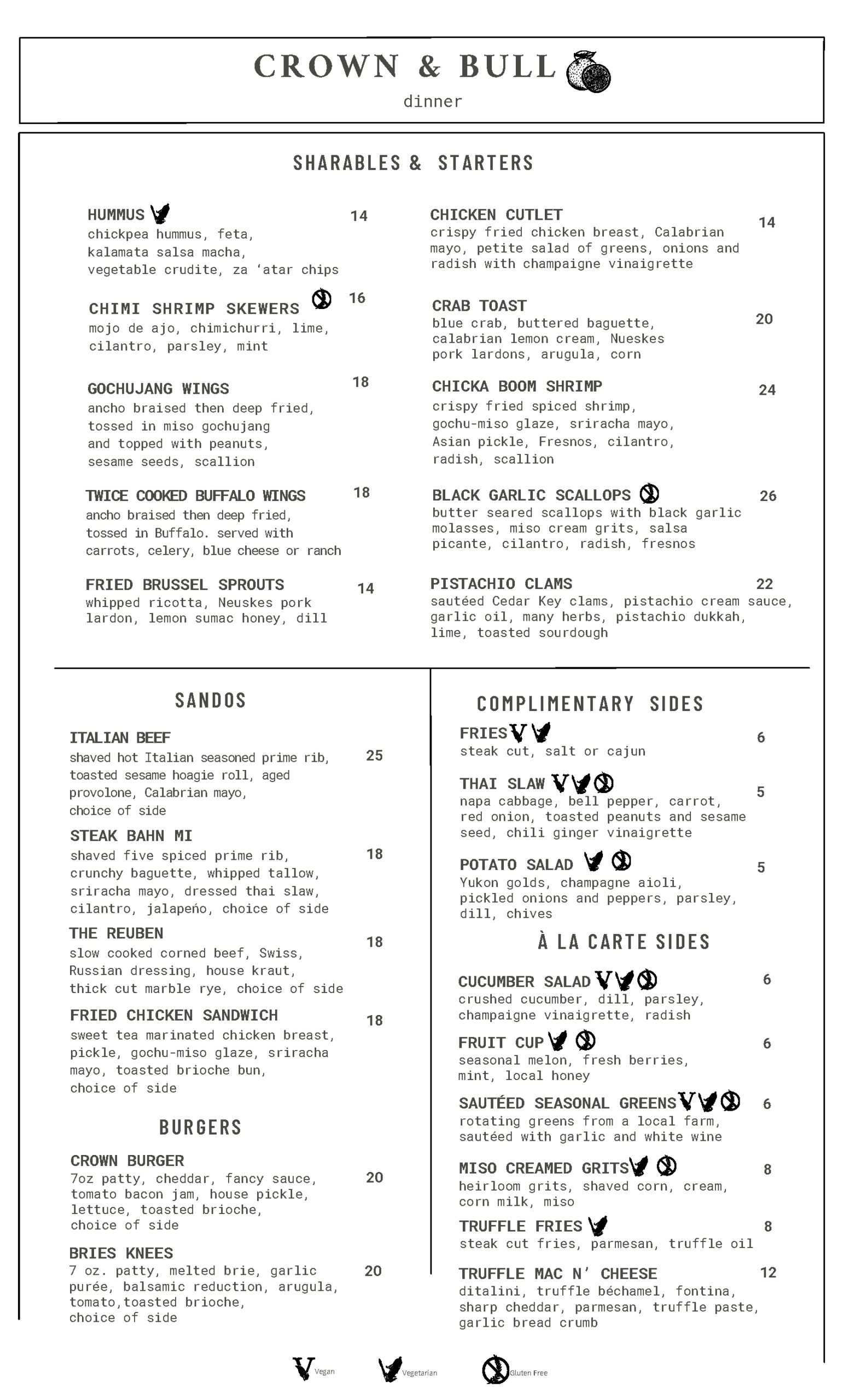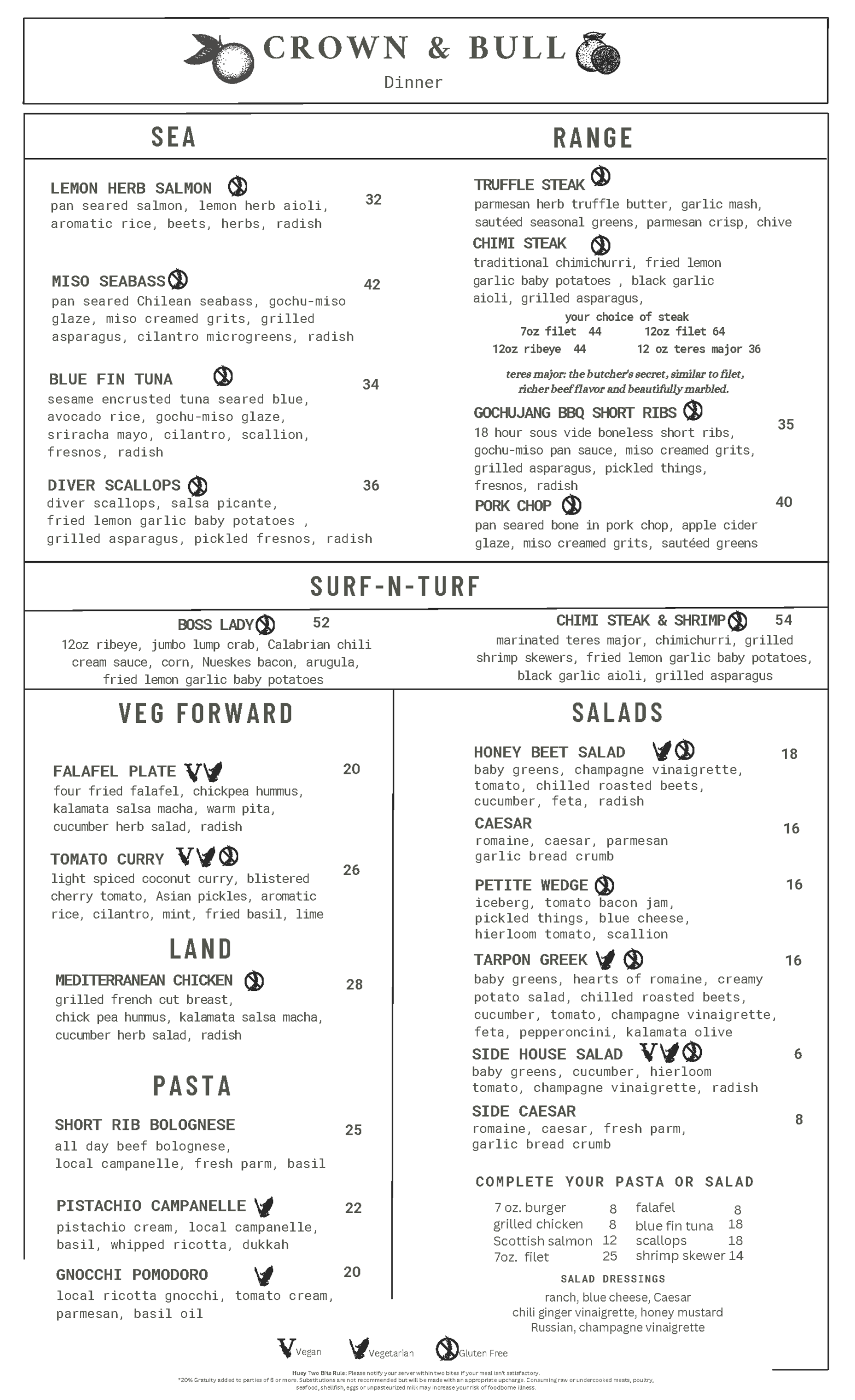 *Substitutions are not recommended but will be made with an appropriate upcharge. Consuming raw or undercooked meats, poultry, seafood, shellfish, eggs or unpasteurized milk may increase your risk of food-borne illnesses.