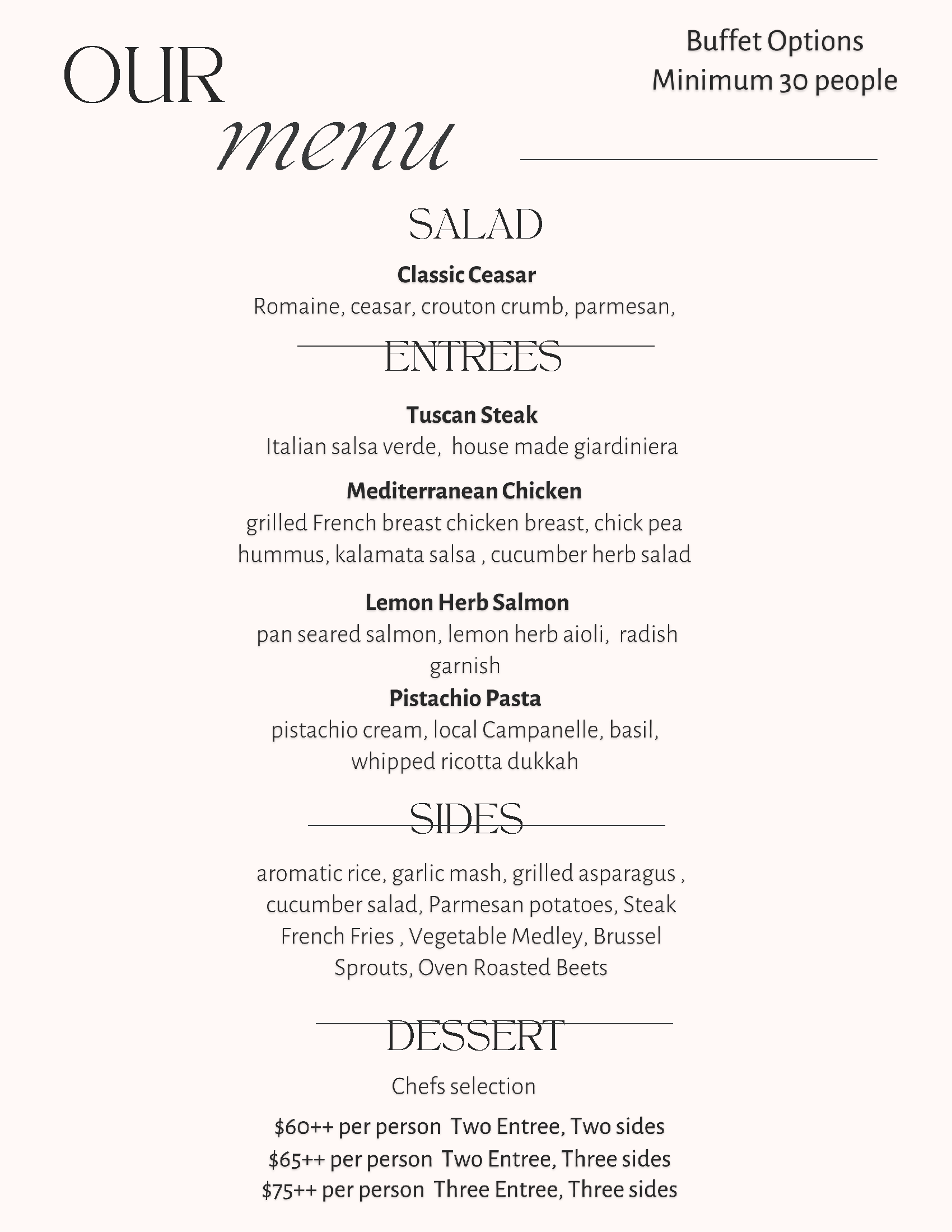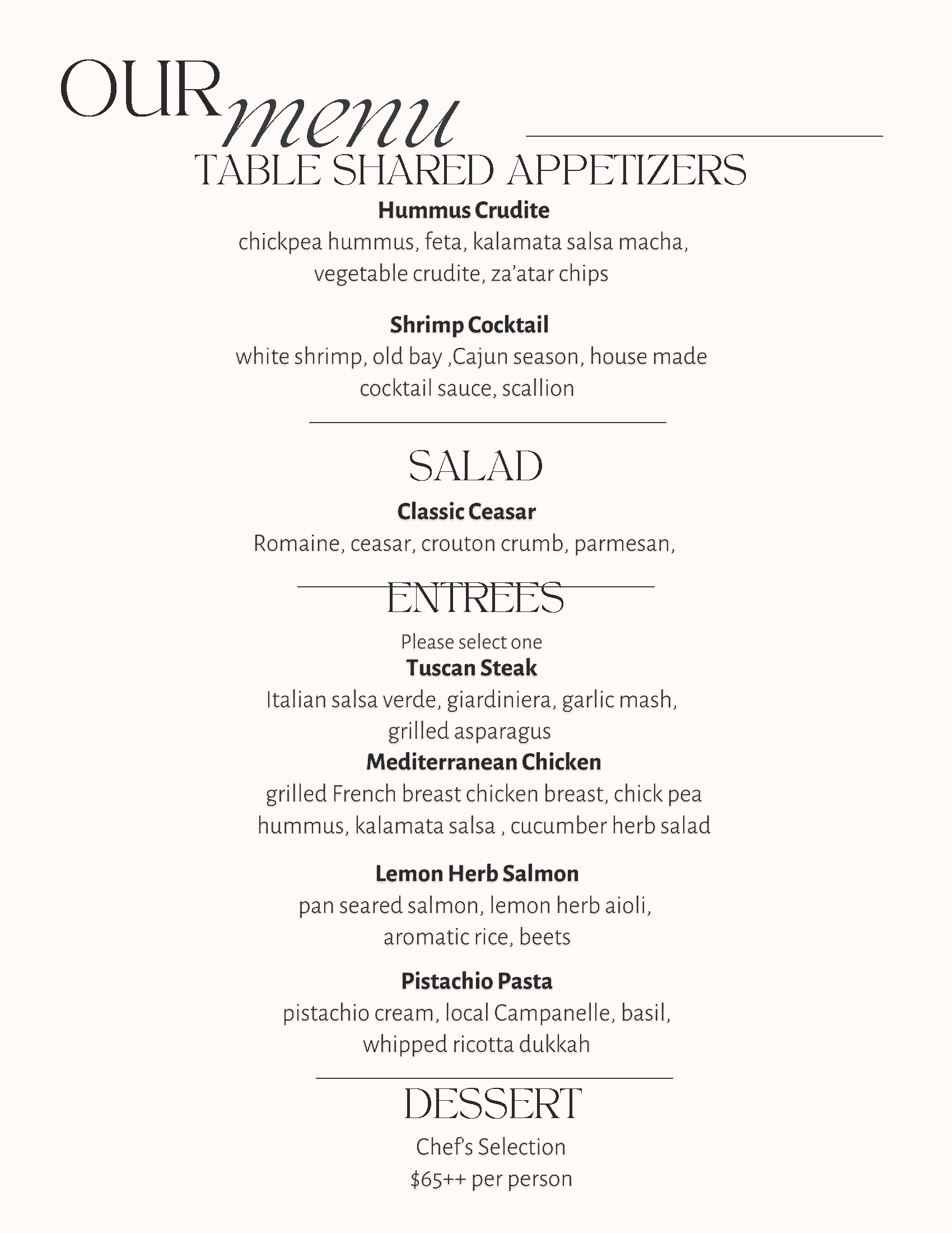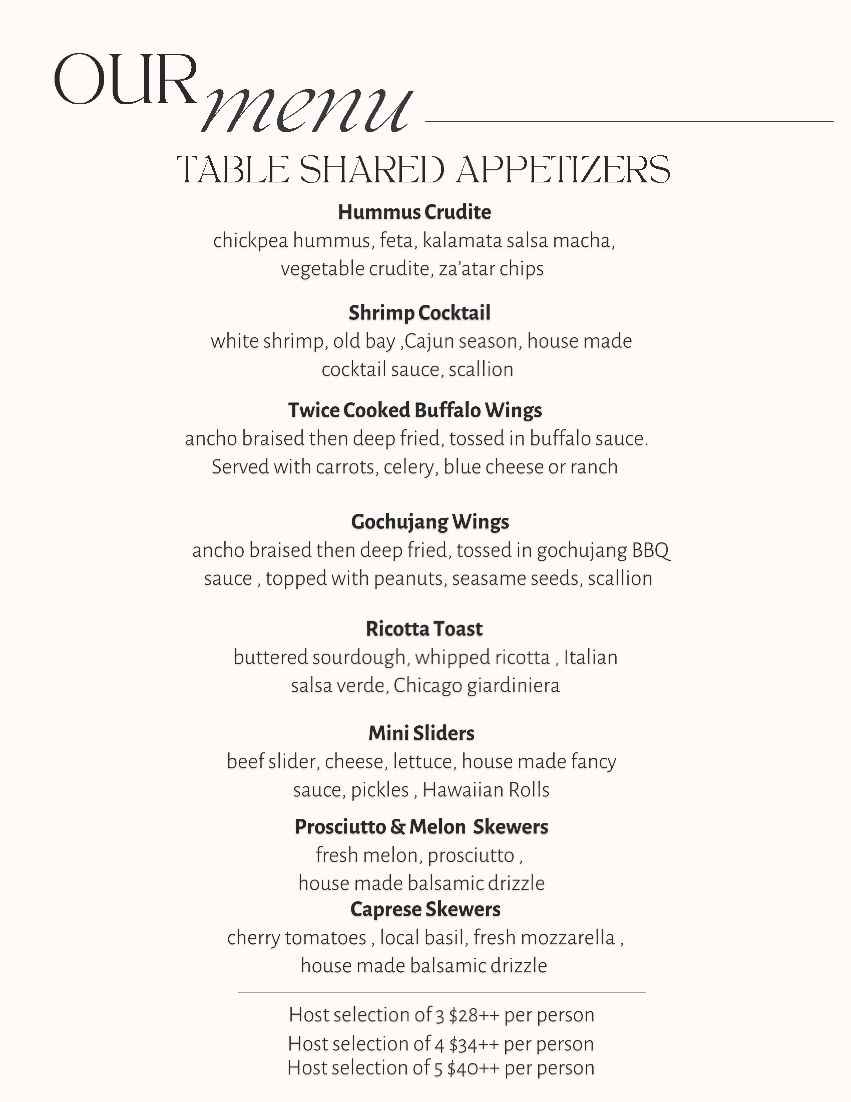 *Substitutions are not recommended but will be made with an appropriate upcharge. Consuming raw or undercooked meats, poultry, seafood, shellfish, eggs or unpasteurized milk may increase your risk of food-borne illnesses.